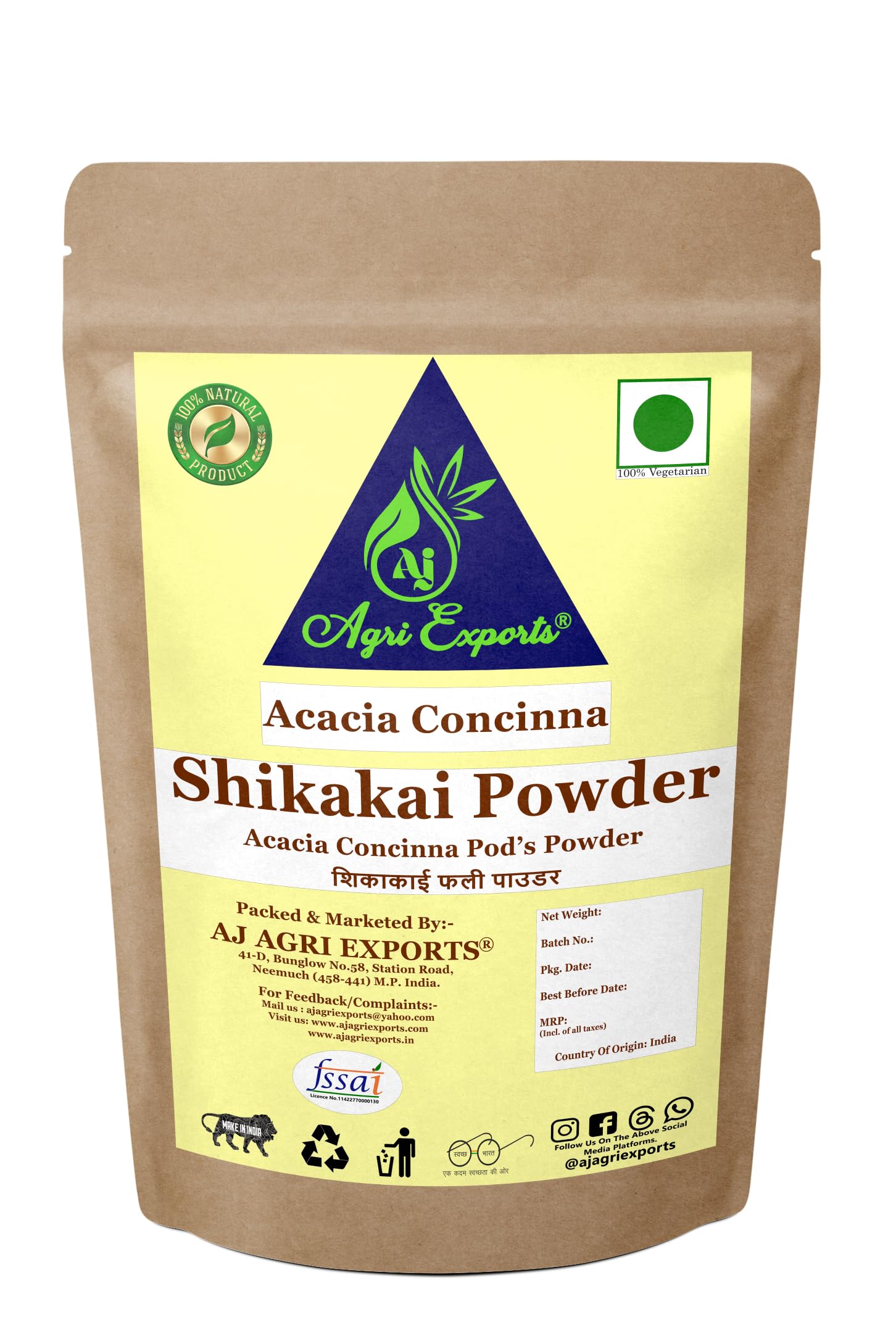 AJ AGRI EXPORTS Shikakai Powder is a natural hair cleanser and conditioner that promotes a healthy scalp and hair care. This powder derived from the Acacia Concinna plant is 100% natural with no added preservatives making it a chemical-free option for men and women. Shikakai Powder gently cleanses and conditions frizzy hair adding shine and nourishment. It is a traditional Indian hair care solution that has been used for centuries. This natural powder is an excellent choice for those seeking a gentle effective and natural way to maintain healthy lustrous hair. Use it as part of your hair care routine for soft manageable and radiant tresses.