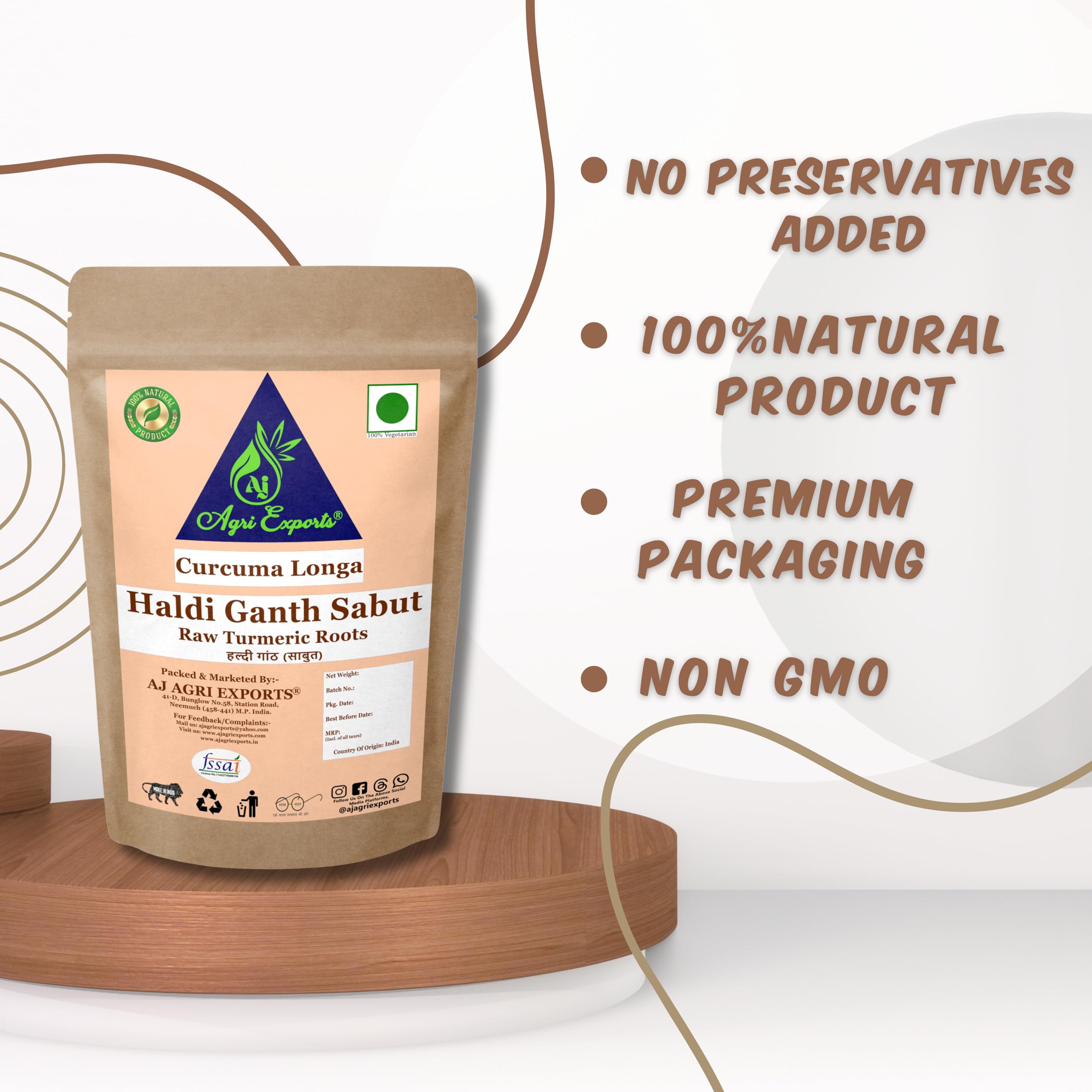 AJ AGRI EXPORTS Turmeric Root - Pure Turmeric Root with Deep Golden Color and Earthy Aroma for Cooking and Natural Coloring | Non-GMO (25 Gram) (Pack of 1)