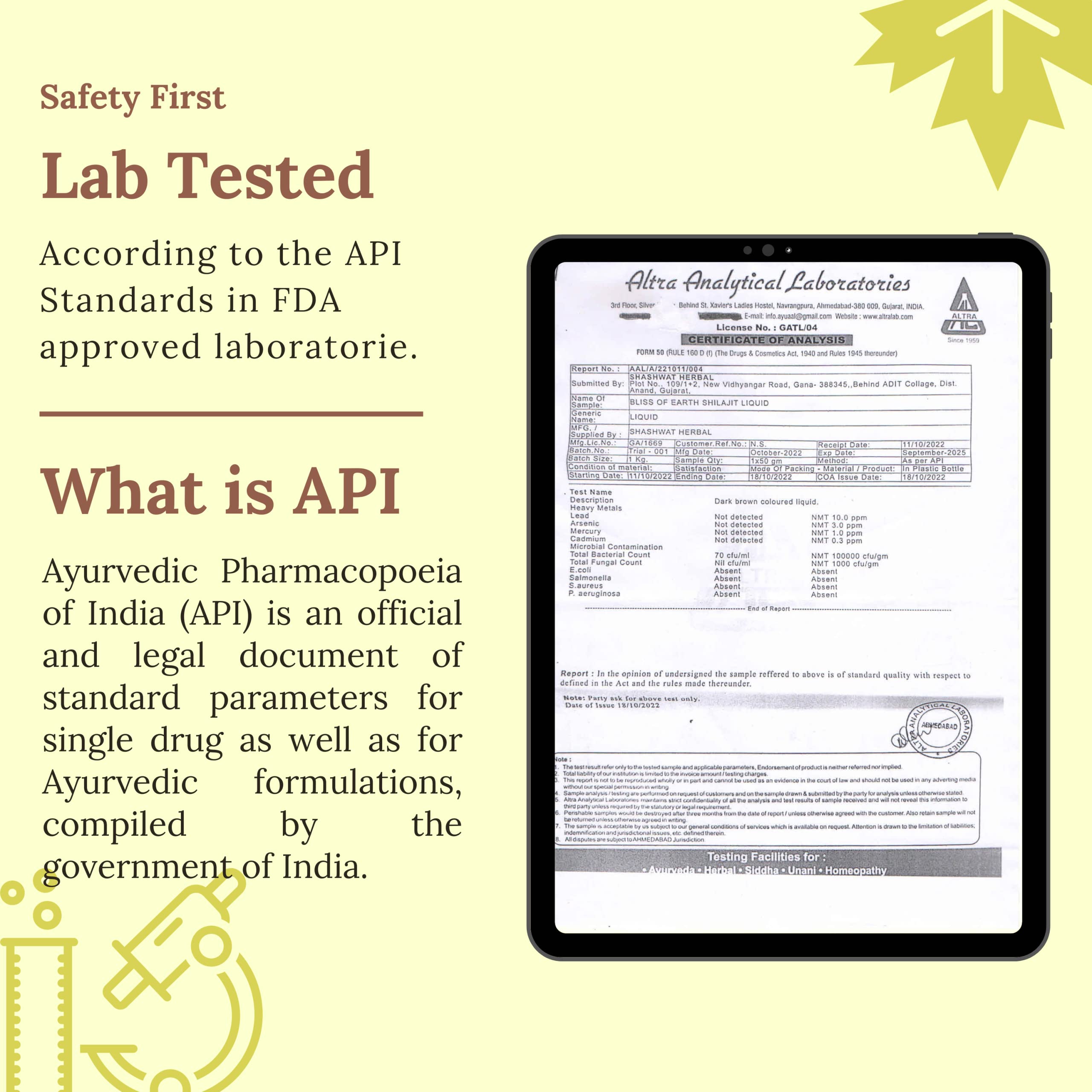 LAB TESTED AS PER API: Our shilajit is tested for safety according to Ayurvedic Pharmacopoeia of India (API) standards. API is a Government of India official and legal document of standard parameters for ayurvedic formulations. This makes Bliss of Earth S