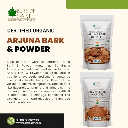 Heart-Healthy Arjuna Bark Whole:Boost your heart health with our premium Arjuna bark whole! Packed with natural antioxidants and nutrients it supports cardiovascular wellness and regulates blood pressure. Experience the benefits of this ancient Ayurvedic remedy now conveniently available to you. Pure and Potent:Our Arjuna bark whole is ethically sourced and processed to retain maximum potency and purity. Enjoy the peace of mind knowing you are getting a high-quality natural solution for your heart health needs. Take charge of your well-being today with Bliss of Earth's Arjuna bark whole.