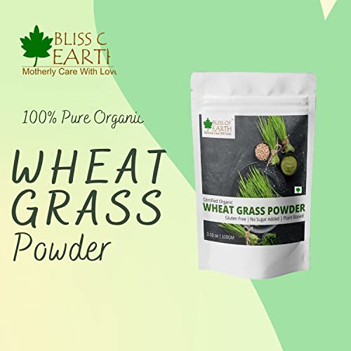 Bliss of Earth USDA Organic Wheatgrass Powder | 100GM | 33 Servings | Super Food Dietary Supplement | Rich in VIT A & B | Non GMO | Gluten Free |