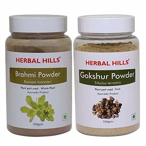 Herbal Hills Brahmi Powder and Gokshur Powder - 100 gms each for memory support hair care and healthy digestion