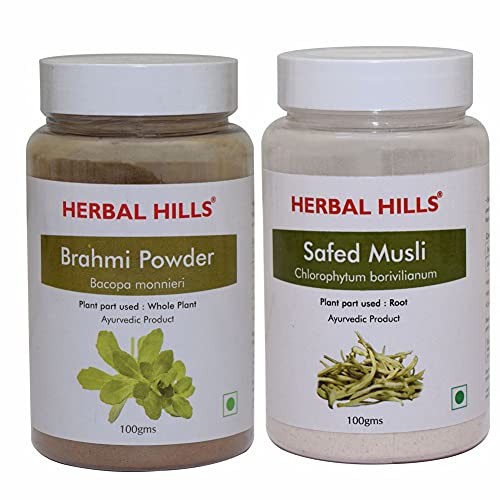 Herbal Hills Brahmi Powder and Safed Musli powder - 100 gms powder each for memory support and mens health