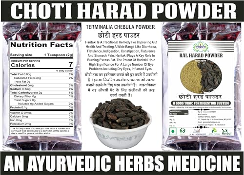 CHOTI HARAD CHURAN/bal harad – black small - harade haritaki terminalia chebula kali harada powder for improved digestion & constipation (200 gm.)