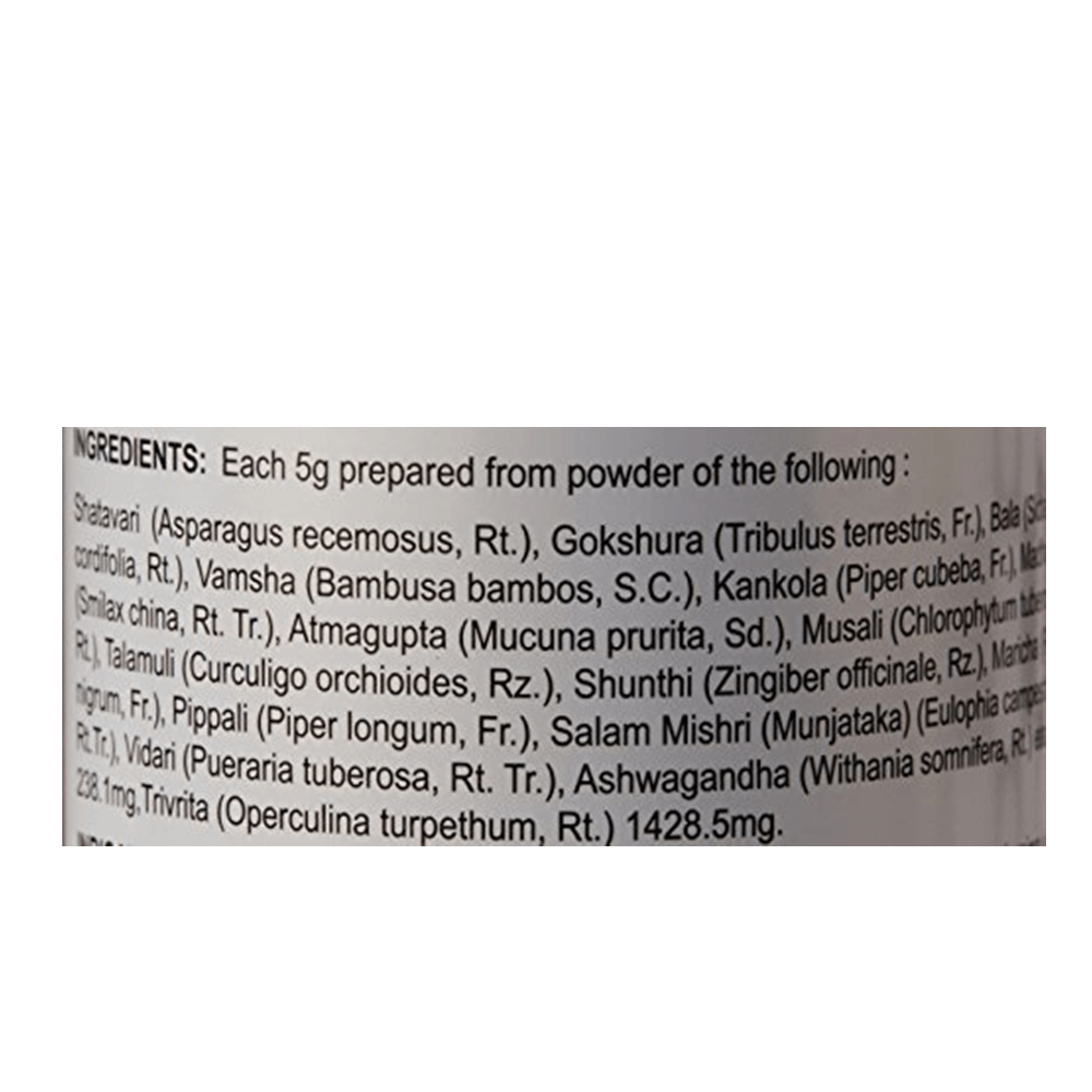 Dabur Dhatupaushtika Churna : 100 gmDabur Dhatupaushtika Churna is an effective and potent ayurvedic Supplement.Ingredients :Made from the rich collection of natural and herbal ingredient, this package is made from:Khurasani AjavainSuddha HingulaShuddha GandhakaJatiphalaShveta CandanaLavangaShunthiPippaliKunkumaAkarkarabhaHow to Use :Take this Dabur Dhatupaushtika Churna 1 hour before bed time, with milk or as suggested by the doctor.Note: The product is guaranteed to be 100% genuine. Product images are for illustrative purposes only. Images/packaging/ labels may vary from time to time due to changes made by the manufacturer's manufacturing batch and location. The product description is for information purposes only and may contain additional ingredients.Legal Disclaimer: Statements regarding dietary supplements have not been evaluated by the FDA and are not intended to diagnose, treat, cure, or prevent any disease or health condition
