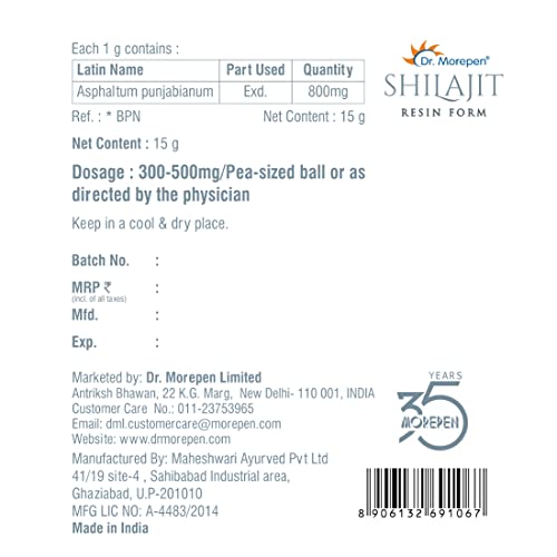 DR. MOREPEN Shilajit Resin | 100% Pure Himalayan Extract | Natural & Safe | 15gm
