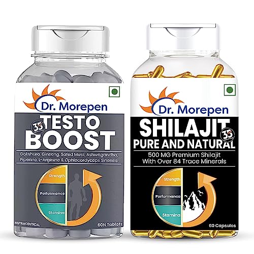 Dr. Morepen Testo Boost Tablets that help enhance everyday performance for sculpting lean muscle. Dr. Morepen Shilajit Capsules works as a natural health rejuvenator that helps improve stamina and energy level. It enhances physical performance by overcoming tiredness lethargy and chronic fatigue.