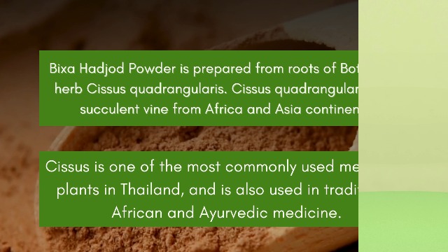 Cissus quadrangularis Extract contains a range of carotenoids triterpenoids vitamins 3-keto steroids and minerals. The Hadjod Extract may help to prevent the degradation of bone matter stimulates the production of osteoblasts which are the cells in the body responsible for growing bone or fractured bone. The Hadjod extract is rich in Vitamin C which is a crucial componant of Collagen useful for tissue healing and growth. Study shows that Cissus quadrangularis extract taken regularly with a healthy diet and exercise plan can suppress appetite burn fat & help promote weight loss.