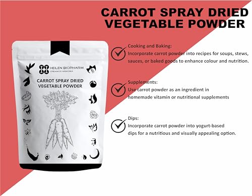 Heilen Biopharm's Carrot Spray dried vegetable powder is a good flavoring agent. Use to make Salad green juice stuffed parathas It comes in standy zip lock pouch easy to use & store.