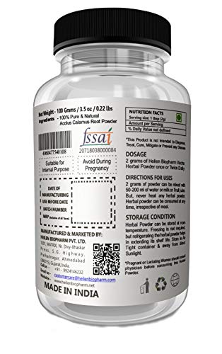 Heilen Biopharm Premium Vacha/Sweet Flag/Acorus Calamus/Bach Powder 200 gm