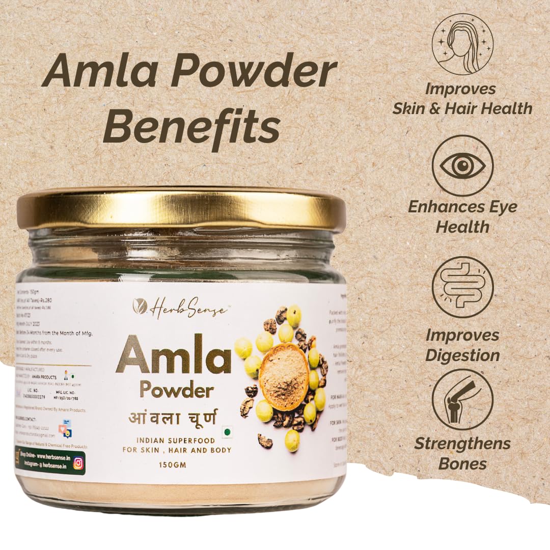 Herbsense Amla Powder/Awla Churna - Indian Superfood For Skin Hair & Diet | Face Mask Hair Care Powder | Net Contains 150 GM