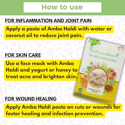 Ambehaldi powder may help to stimulate the production of bile a digestive juice needed in the digestion of fat. Amba haldi for face glow and may support healthy metabolism also. Amba haldi powder has Antioxidant anti-inflammatory & antibacterial properties for glowing skin & acne etc. Curcuma aromatica may help in natural toxin removal from the body.