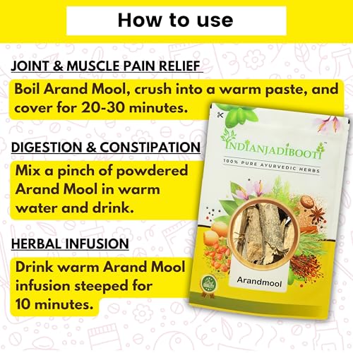 IndianJadiBooti Arand Mool - Castor Root - Arandi Jadd, 400 Grams Pack