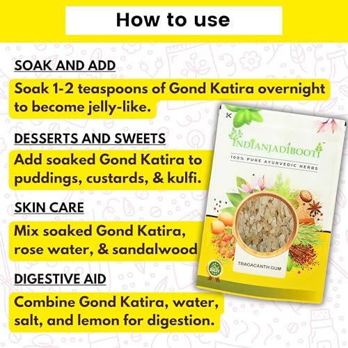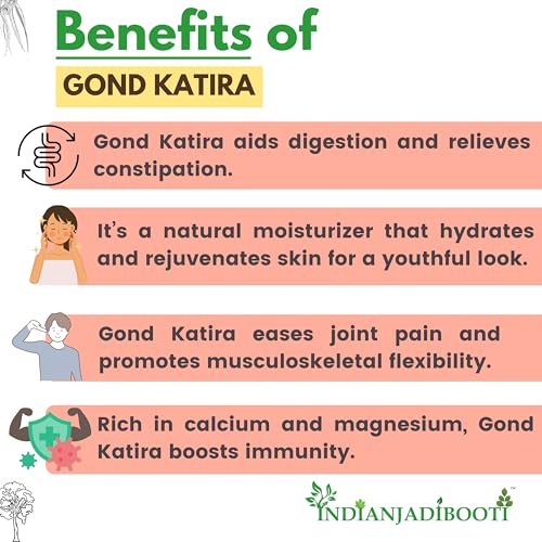 IndianJadiBooti Gond Katira Pure (Edible Gum) | Tragacanth Gum | High Cooling Properties Herbal Food | Super Food, 400 Grams