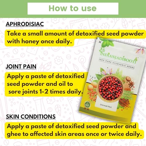 IndianJadiBooti Gunja Lal Seeds-Chirmati Red Beej-Lal Ratti-Abrus Precatorius, 100 Grams