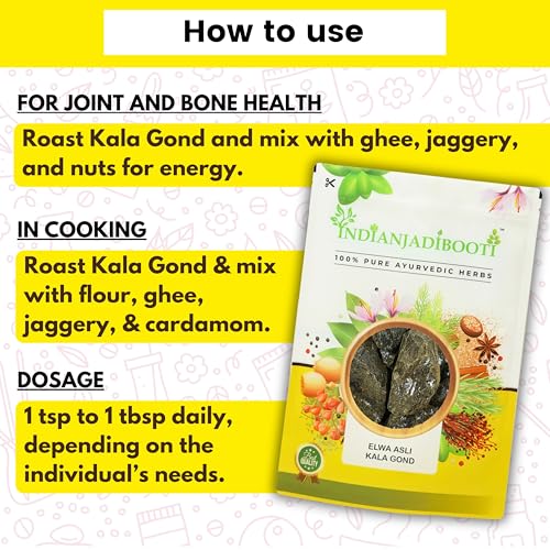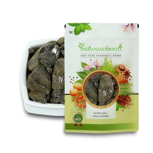 IndianJadiBooti Kala Gond - Goond Siyah - Elwa Asli - Aloe Vera Gum - Aloevera Gond - Aloe Barbadensis, 250 Grams