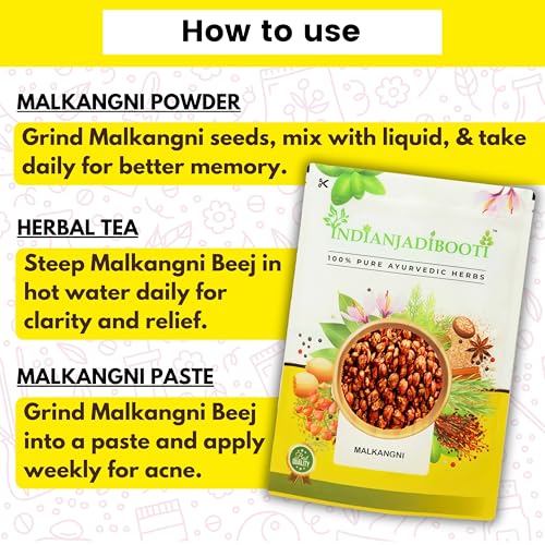 Malkangani is an effective remedy to manage stress or anxiety. According to Ayurveda stress is due to an aggravated Vata. Malkangani has Vata balancing property and helps reduce stress. It also has Medhya (improves intelligence) property which calms and relaxes the mind.