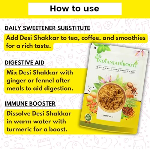 Indianjadibooti Jaggery Powder is processed with at most care without any chemicals/fertilizers/ clarification or pesticides. Brown color and soft texture is de rived from evaporation of sugarcane juice resulting in yellow to dark brown shakkar. ALTERNATIVE OF REFINED SUGAR Indianjadibooti Jaggery Powder makes an Excellent 1 to 1 Ration (spoon-for-spoon) Replacement to refined white sugar. That's means it's easy to switch out white sugar or artificial sweeteners DHAMPUR organic jaggery Powder in simple meals and gourmet recipes! The Possibilities are Endless.