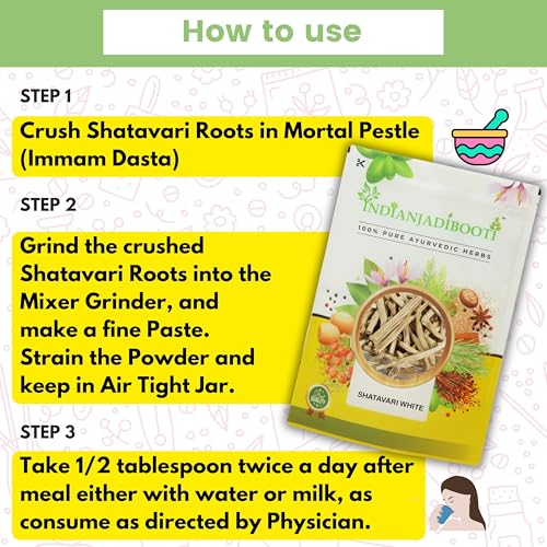 IndianJadiBooti Shatavari White | Boosts Stamina and Vitality | White Shatavari Root | Dry Shatavari | Shatavri Stick | 100 Grams Pack