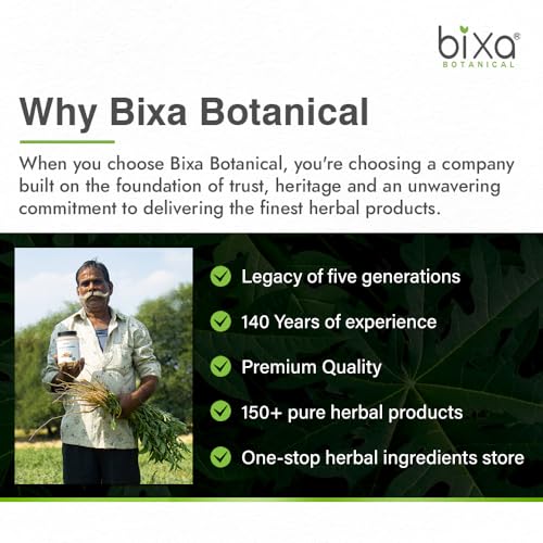 More than a company, Bixa Botanical is a dream - to share the collective knowledge of five generations of a family with the world; secrets of Herbal Healing that have been painstakingly accumulated over the last 140 years.In 2015, this dream took its first step towards becoming reality, with Bixa products being made directly available to consumers. However, converting dreams into reality takes time, and effort. And the greatest effort for preparing Bixa herbal products is put in by a group of farmers and tribal families across India, from magical mountains to forbidden forests.The next step in getting the Botanical products ready for you is the processing of these beautiful, healthy plants into a form that can be safely consumed by you. The herbs are exclusively processed in the companys ultra-modern in-house facilities. This allows the use of the freshest-possible ingredients for maximum health benefits. Needless to say Needless to say, these factories have all the relevant certifications like ISO, GMP, Kosher, Halal....and more.Each product that comes out is then tested comprehensively, and only products that pass the strictest quality controls are allowed to go out of the factories. And after all these stages, more than 100 botanical products are offered to wellness-conscious and discerning consumers across the world, in the form of herbal powders, herbal extracts in vegetarian capsules, and Herbal tisanes.These herbal offerings not only have excellent curative properties, but also help in maintaining the bodys health, that too without any side-effects. So why dont you too put yourself in the nurturing hands of Mother Nature, and let her heal your body, the natural way.