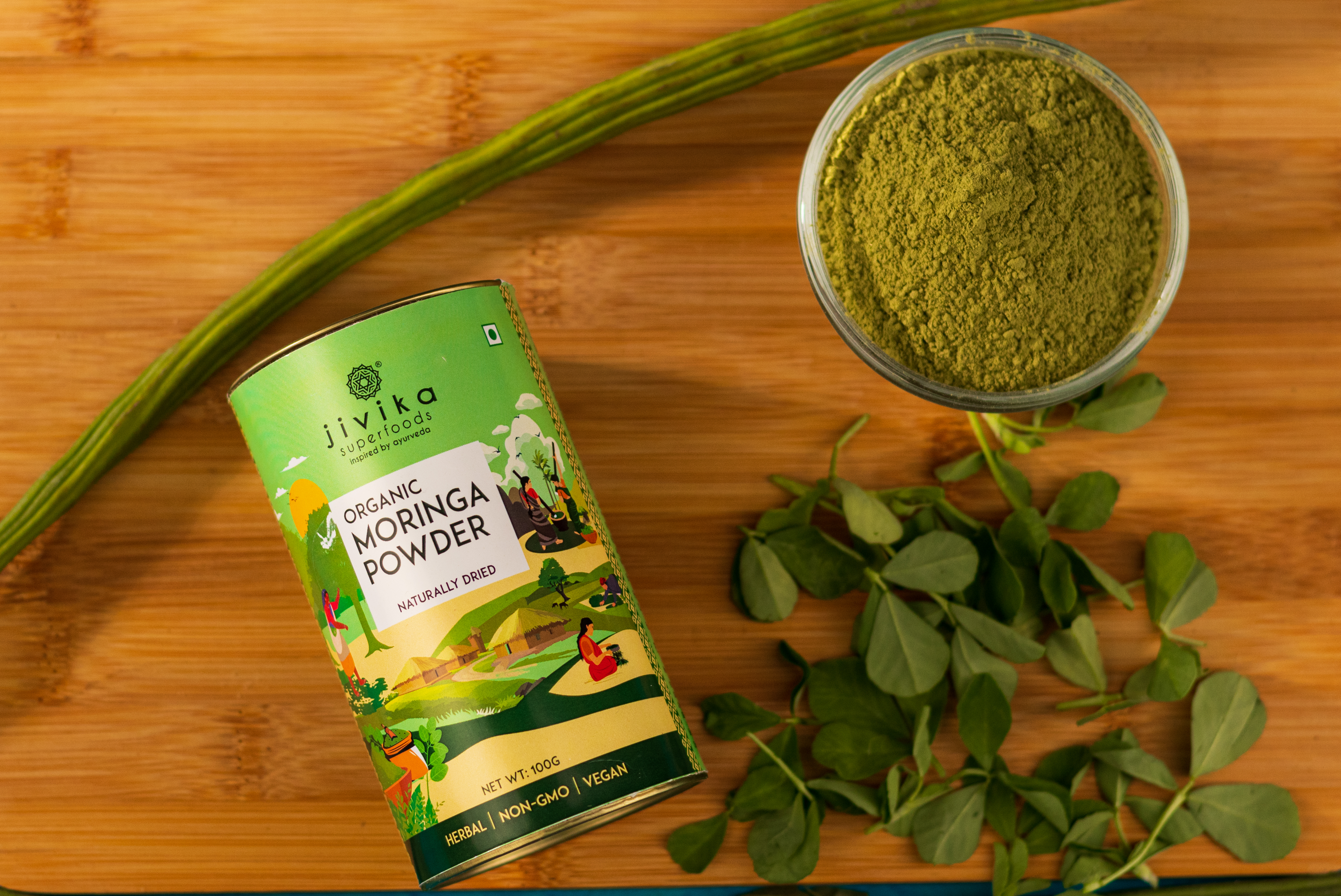 Our is carefully sourced from the fields of Rajasthan, where the finest fully grown leaves are handpicked for optimal quality. These native Moringa leaves are naturally dried to preserve their maximum nutritional value. Considered an Ayurvedic superfood, is an essential addition to every household. Its delightful taste and exceptional health benefits make it a versatile ingredient for day-to-day cooking. Rest assured, it is a 100% natural, itive-free, non-GMO, and vegan product. Packed with anti. At Jivika Organics, we create our Indian superfoods in accordance with the procedures and practices mentioned in Ayurveda, ensuring nutritional value. We are dedicated to promoting the well-being of Indian farmers and local communities. Enjoy the flexibility of adding to your daily routine. Enhance the nutritional value of smoothies, dough parathas or pooris, and dry chutneys. You can also incorporate it into tea or various other dishes during day-to-day cooking.