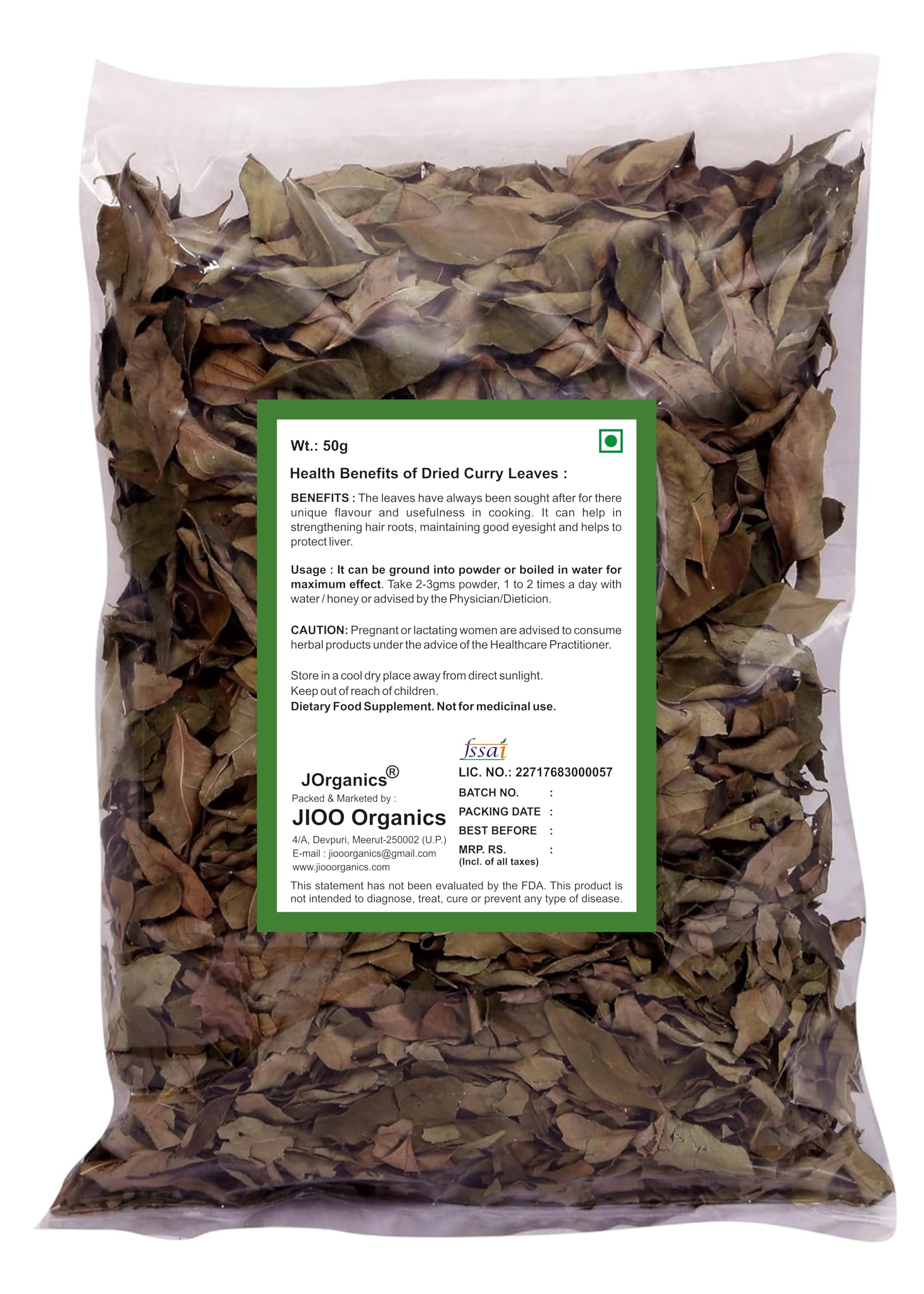 Curry leaves / kadi patta / karuveppillai Uses : It is a staple in Indian dishes. Commonly used as seasoning this leaf adds a special flavour to every dish. But there is more to the humble curry leaf than simply flavour.It has carbohydrates fiber calcium phosphorous irons and vitamins like vitamin C vitamin A vitamin B vitamin E curry leaves help your heart function better fights infections and can enliven your hair and skin with vitality. CIt Is A Vegetarian Product.Curry Leaves Have Several Medicinal Properties Such As Anti-DiabeticAnti-Oxidants Anti-Microbial And Anti-Inflammatory.The Leaves With Their Vast Herbal Properties Is Used In Various Local Cusines Across India And Other Parts Of Asia.We provide all the real images of products so that you get original product as you seen in photo. We provide good packaging so that your desired item can reach you safely. We are best seller in our product segment.*24x7 service available