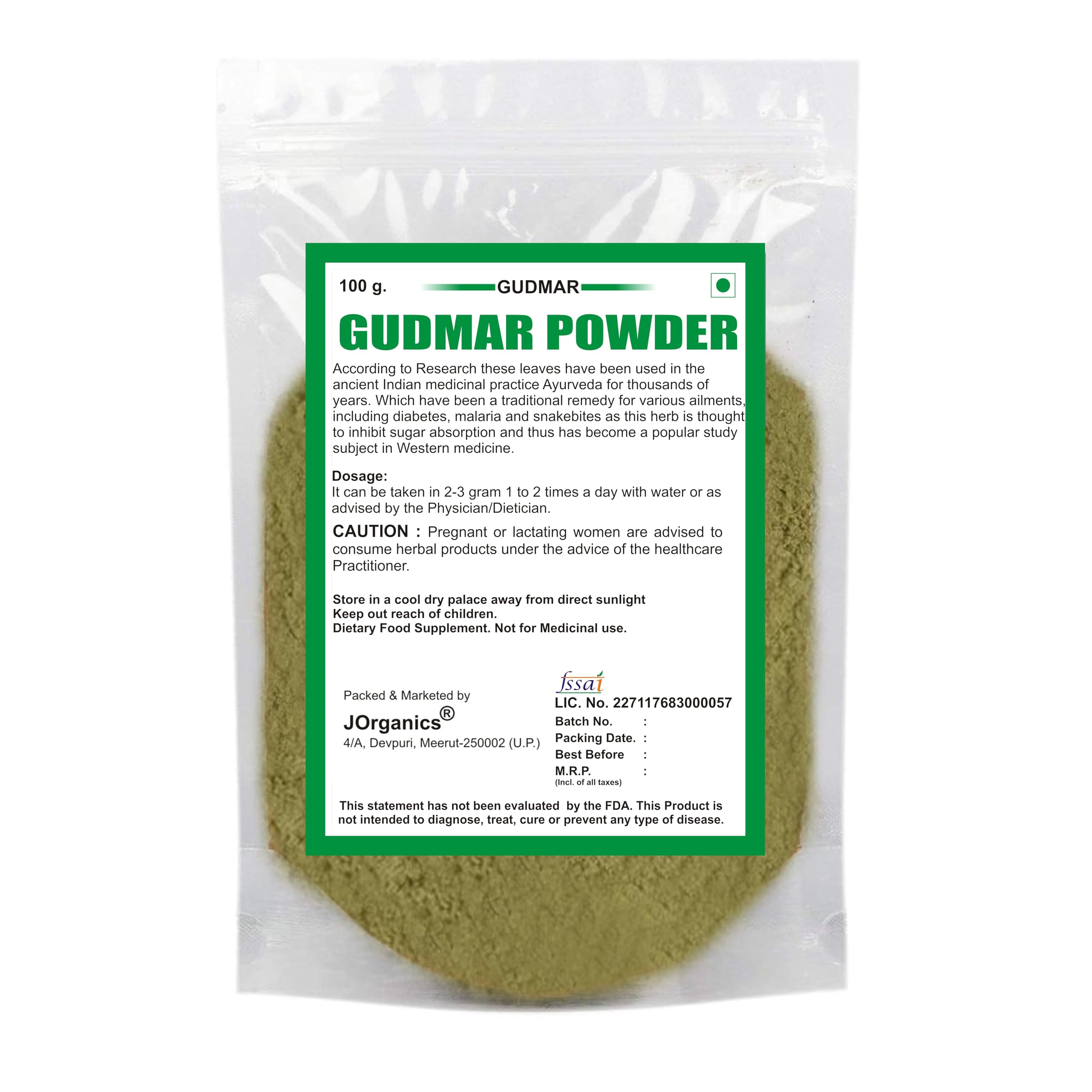 JOrganics Gurmar Leaves Powder - 100 Gram Madhunashini Powder Gymnema Sylvestre Meshashringi May useful for Diabetes & Blood Sugar Management