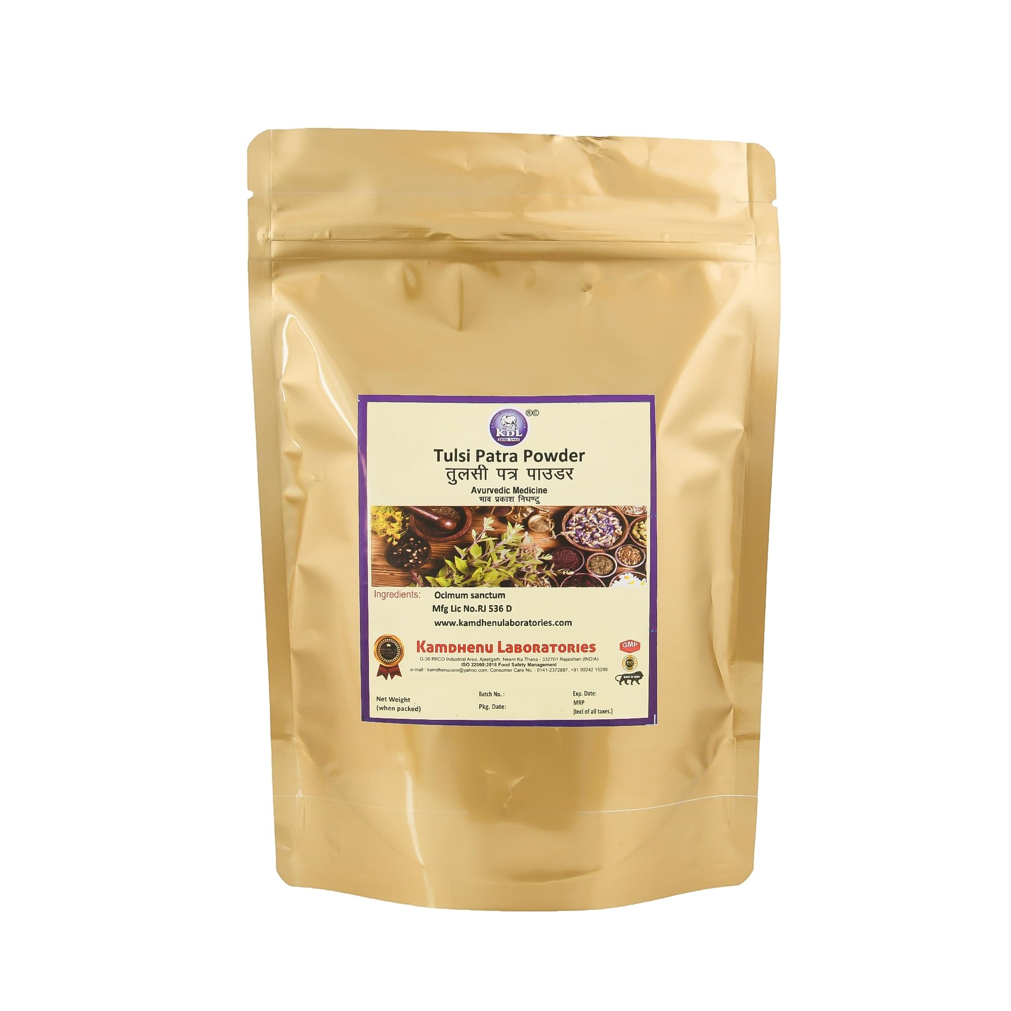 Kamdhenu Tulsi Patra Powder | Ocimum sanctum linn 100 grams, Pack of 1| Holy basil leaves powder | thulasi tulas tulasi