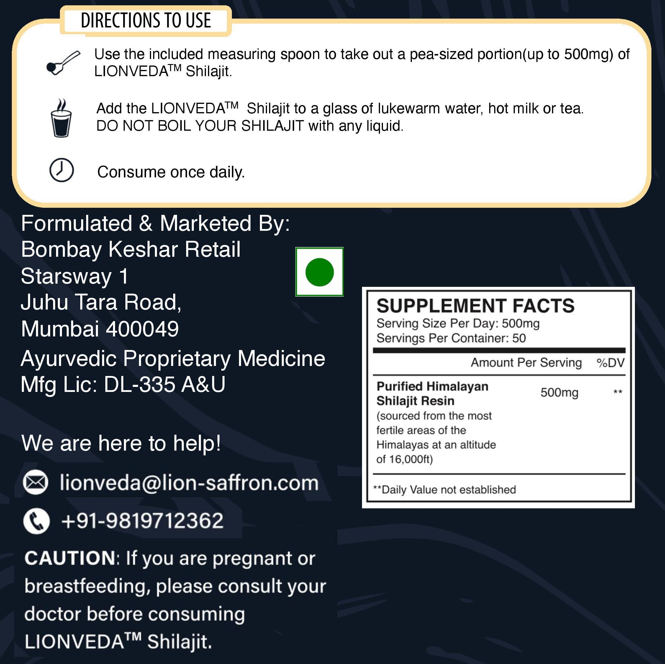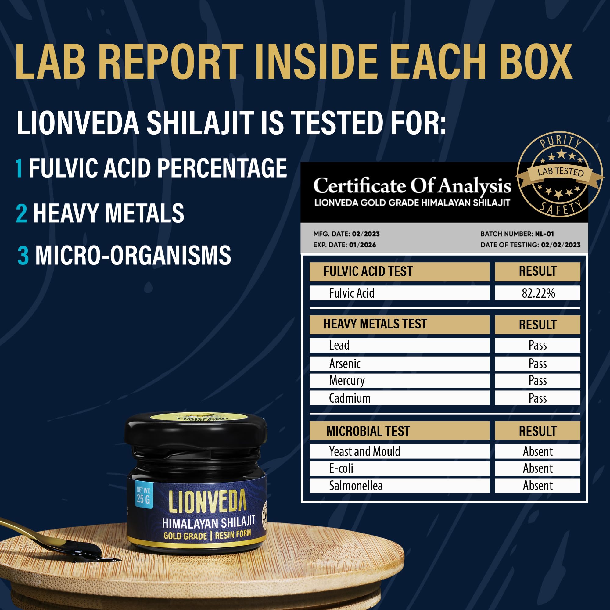 LIONVEDA 25g Original Himalayan Shilajit Resin(Certified Gold Grade) for Men Gym Stamina Energy & Improved Health | 100% Pure Shilajit/Shilajit Liquid (25gm (Pack of 1))