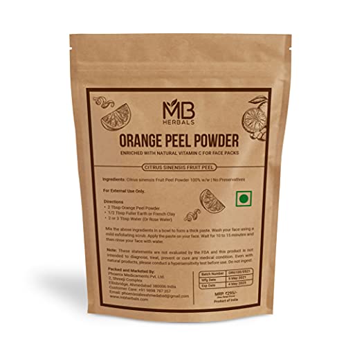 Orange Peel Powder 100 g 100% Pure Orange Peel Powder. Processed in a GMP Certified and FDA Registered Facility No Metallic Salts No Preservatives No Parabens