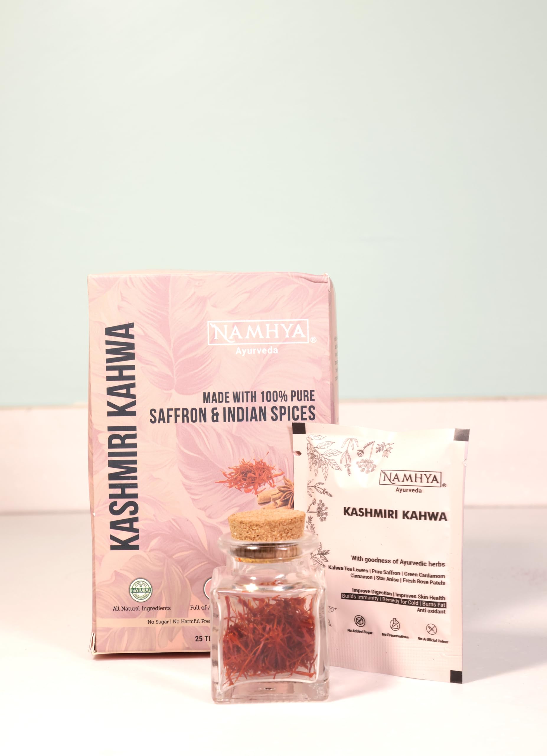 Namhya Memoir from Kashmir is a traditional gift set of our most loved items crafted with love and care. This Gift from Kashmir is a soul warming memoir to savour by. This delightful premium gift set comprises of our Kashmiri Kahwa Tea and Pure Kashmiri Saffron.