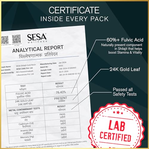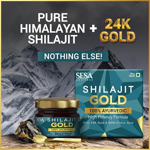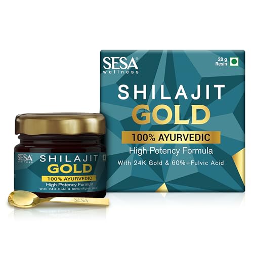 SESA Shilajit Gold Resin 20 grams With 24k Gold 60%+ Fulvic Acid (Certificate Included) Shilajeet for Men Helps Boost Stamina,Immunity & Muscle Recovery 100% Ayurvedic - 20 grams