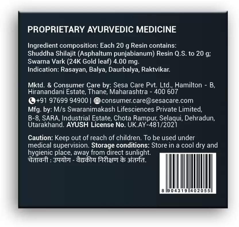 HELPS ENHANCE MUSCULAR STRENGTH : Sesa's Shilajit Gold has purified and high-grade Shilajit Resin which is further enriched with edible Gold in the form of Swarn Vark. This formulation is known to improve muscular strength.