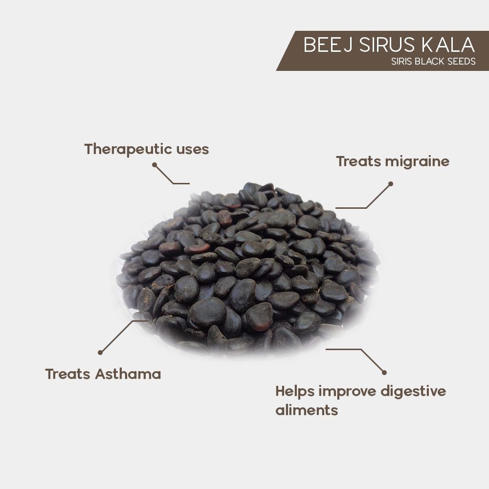 Black Siras Seeds is a medicinal tree native to Indian subcontinent and parts of southeast Asia and northern Australia. In Ayurveda it is used to prepare various. It is a non-toxic tree. This tree contains alkaloids, tannins, saponins and flavonoids which has medicinal action. It is a nitrogen fixing tree.