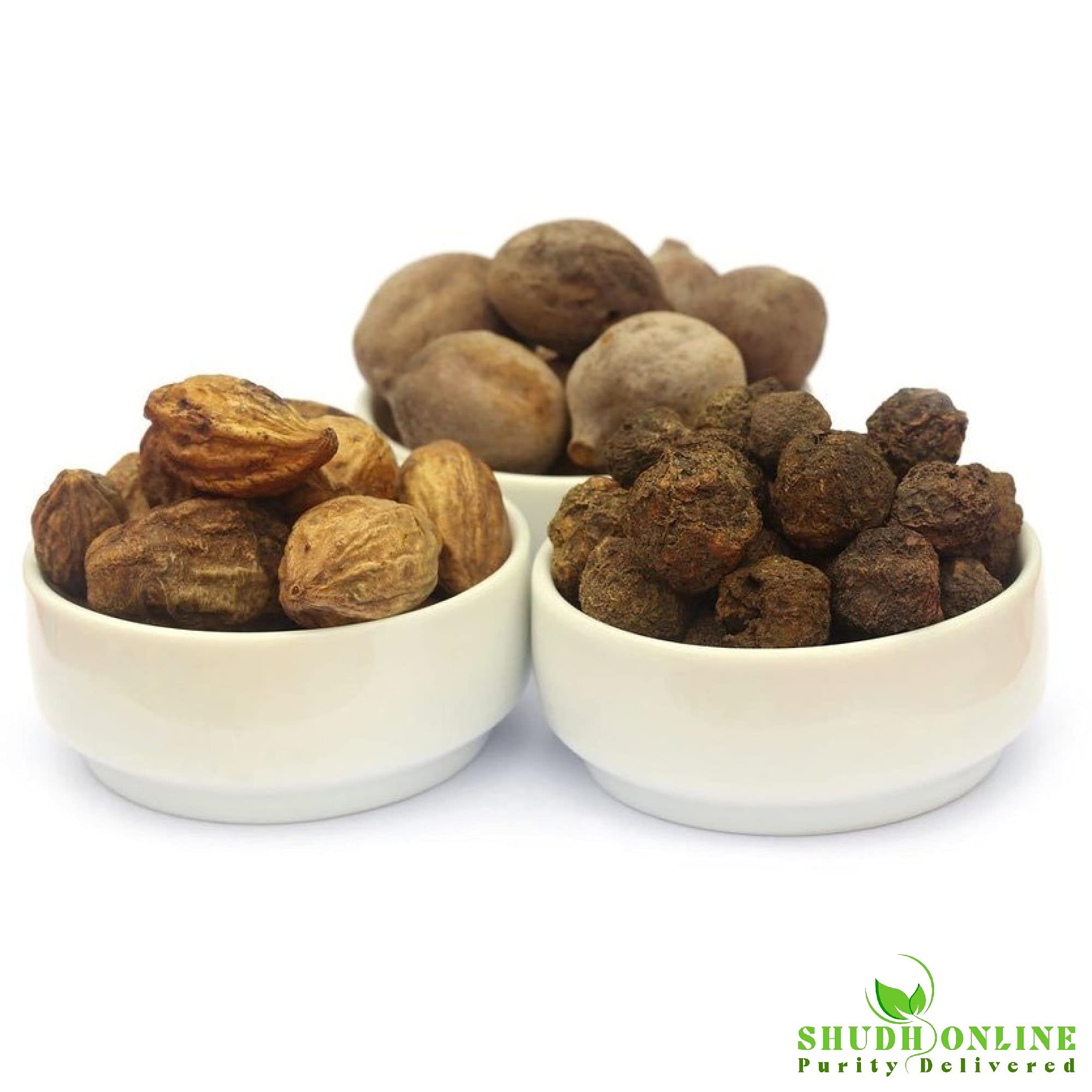 Shudh Online Dry Amla Baheda Harad combo - Triphala Raw (300 Grams - 100 gr each) 1:1:1 Ratio for Digestion Weight loss Hair growth Skin care