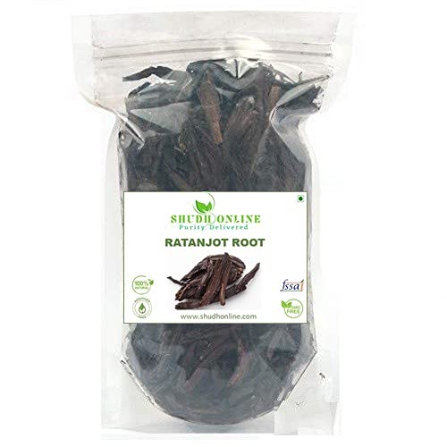 Shudh Online Alkanet root better known as Ratan jot / Ratan Joth is traditionally used to add color to Indian food. It is the original natural food coloring that gives the famous Kashmiri dish rogan josh its signature red color. Sadly these days artificial food colors have replaced ratan jot in tandoori chicken and the traditional Kashmiri rogan josh has been butchered with the use of tomatoes. It is also known as Ratan joot Onosma Orchanet Alkanna Tinctoria Vembalam Pattai Alkanet vempalaá¹ paá¹­á¹­Äyi vembaalam pattee Vembalaá¹ paá¹­á¹­Äyi Laljari Vembalam pattai Baal Jad Buglosse Azuree Yatilung Laljari Maharanga Thavittu vembala Dyers bugloss Spanish Bugloss Languedoc Bugloss. Shudh Online products are selectively sourced with great emphasis on purity and authenticity and are 100% natural ayurvedic products. We don't add any preservatives or additives in the product and using our product will get you closure to nature.