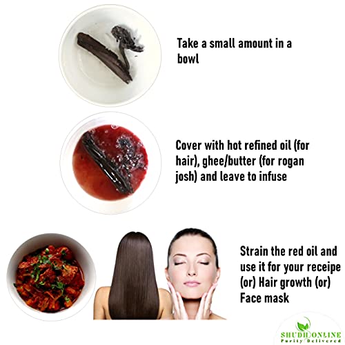 • REDUCE SKIN MARKS - Rattan joth (Onosma / Orchanet) is used for treating cuts scars and wounds. Mix with any oil and apply on marks