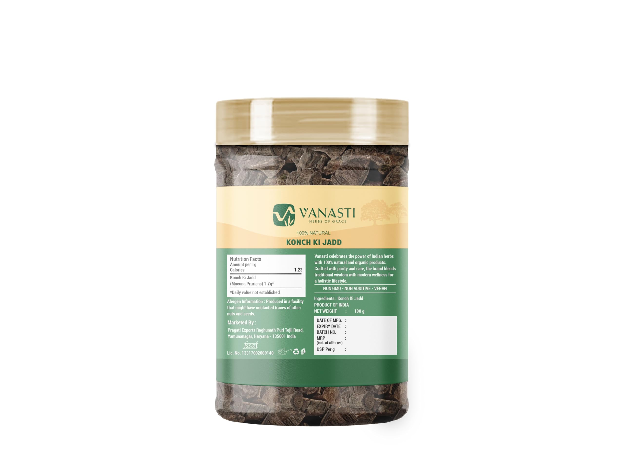 Konch ki Jadd, also known as Mucuna Root, is the fibrous root of the Mucuna pruriens plant, found in tropical regions.It is thick, brown, and firm with a mild, earthy scent.The root contains small amounts of protein, fiber, and minerals like magnesium and potassium.It blends well in powdered or dried herbal mixes.Konch ki Jadd is sometimes included in traditional formulations for its plant content.Its texture and natural profile make it a unique ingredient in select preparations.