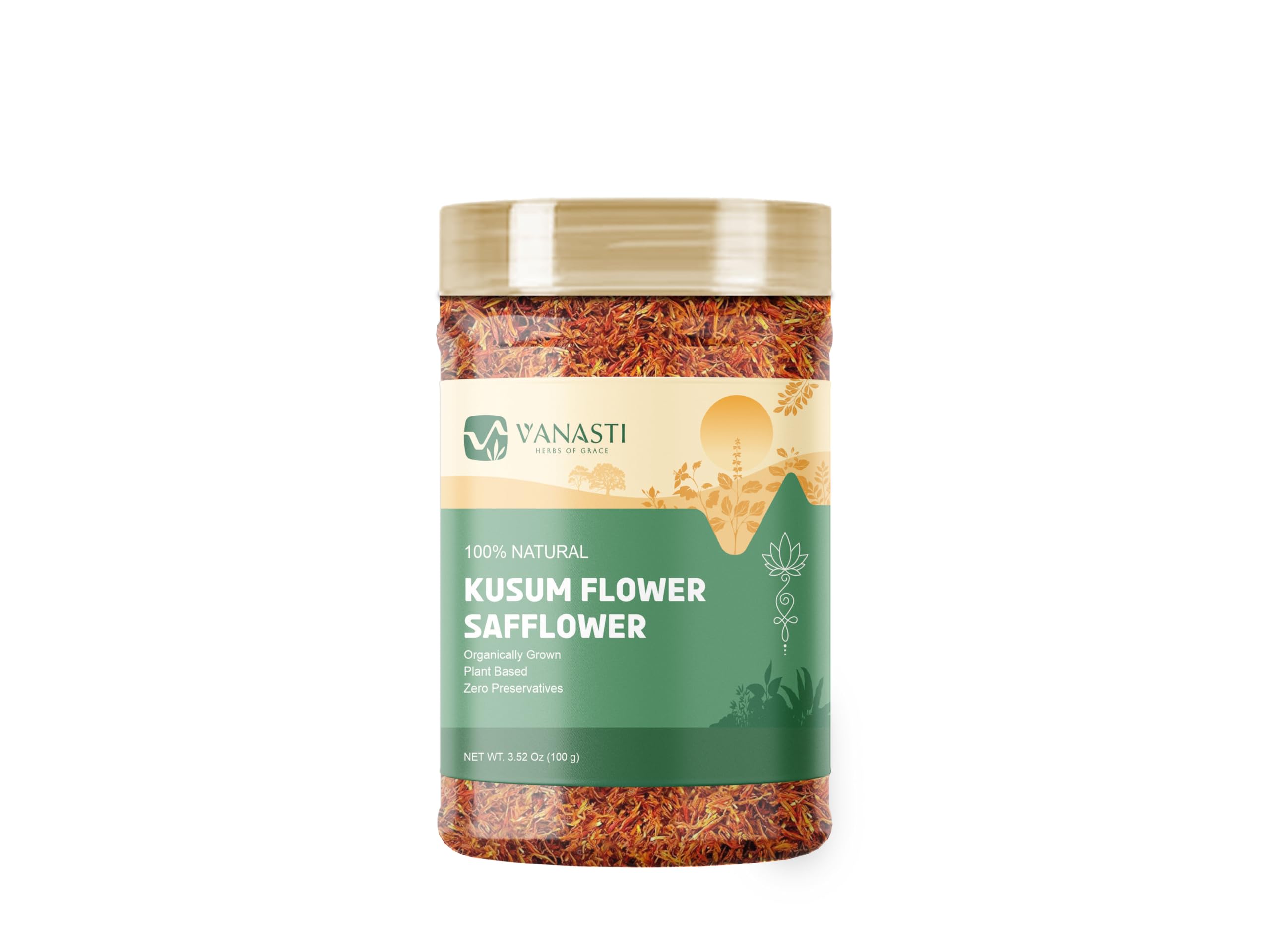 Kusum Flower (Phool Kusum, Carthamus tinctorius Linn, Safflower) is a bright, thistle-like bloom cultivated in many regions for its vibrant petals and seeds. The flower is known for its natural pigments used in coloring foods and textiles, and its seeds yield a light, edible oil. Kusum Flower contains compounds such as flavonoids and essential fatty acids, making it a valued ingredient in culinary and botanical applications.