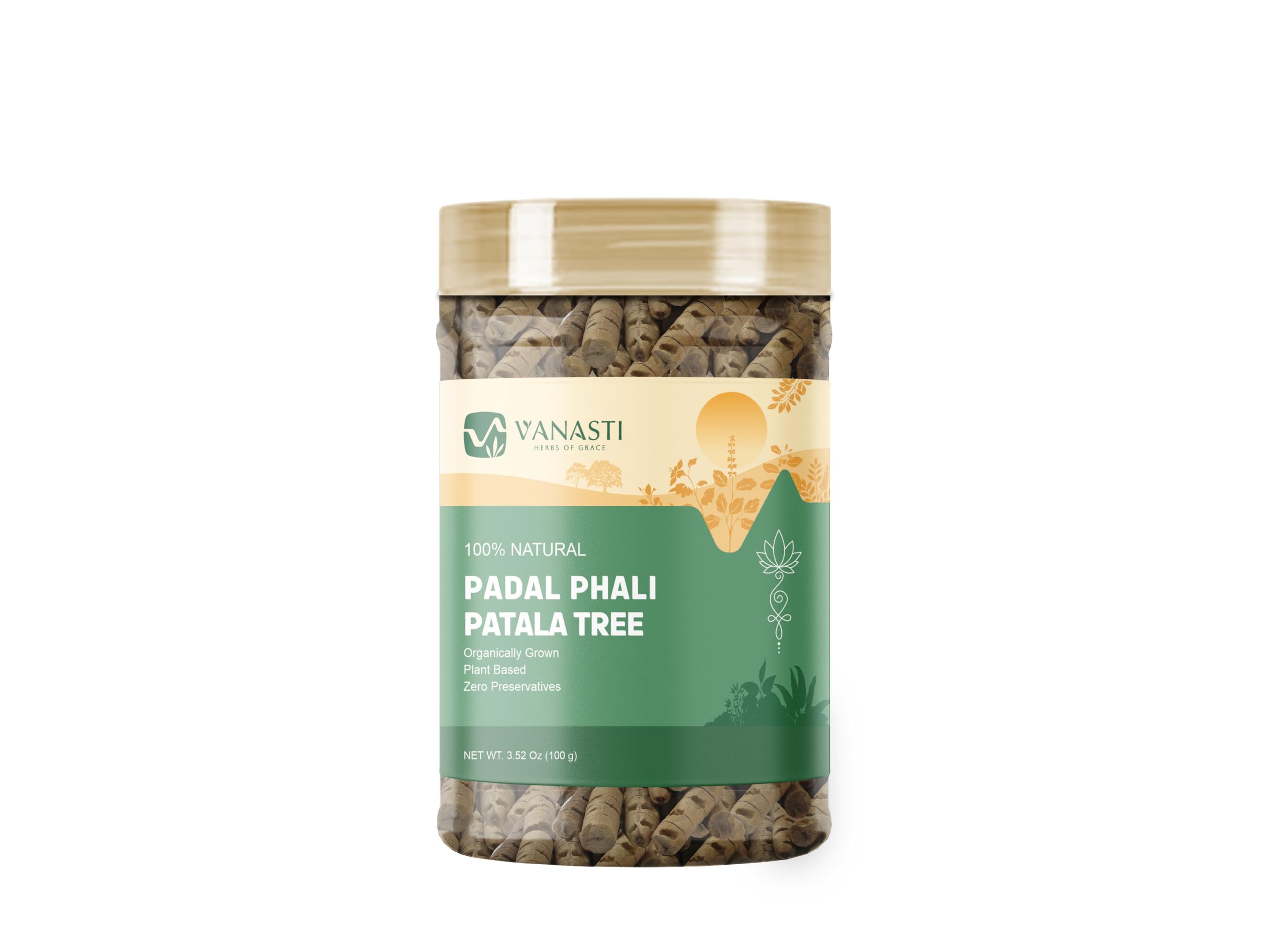 Padal Phali (also known as Patala, Amotha, Maghudhut, Stereospermum suaveolens) is the dried fruit of a tree native to India and Southeast Asia. It is recognized for its elongated, woody pods and has a long history of use in traditional Ayurvedic preparations. Padal Phali contains natural plant compounds such as flavonoids, glycosides, and sterols. Traditionally, it is included in herbal blends and classic recipes, valued for its unique properties and role in various culinary and wellness practices.