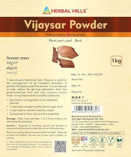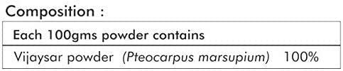 Ingredients: vijaysar powder. All our products are made from quality items. We recommend that you read labels warnings and directions of all products before use and not rely solely on the information. Care instruction keep away from the items or products which may cause damage to this product.