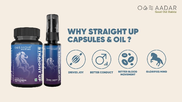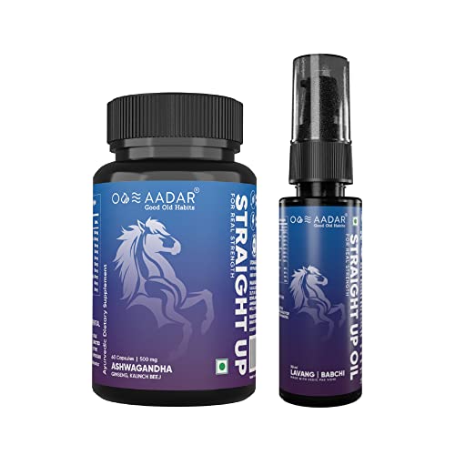 AADAR STRAIGHT UP Combo for real strength, energy booster for Men | Made with 10+ natural ingredients(Ashwagandha, Ginseng, Kaunch, Lavang, Babchi) (60 Capsules and 30 ml Oil)