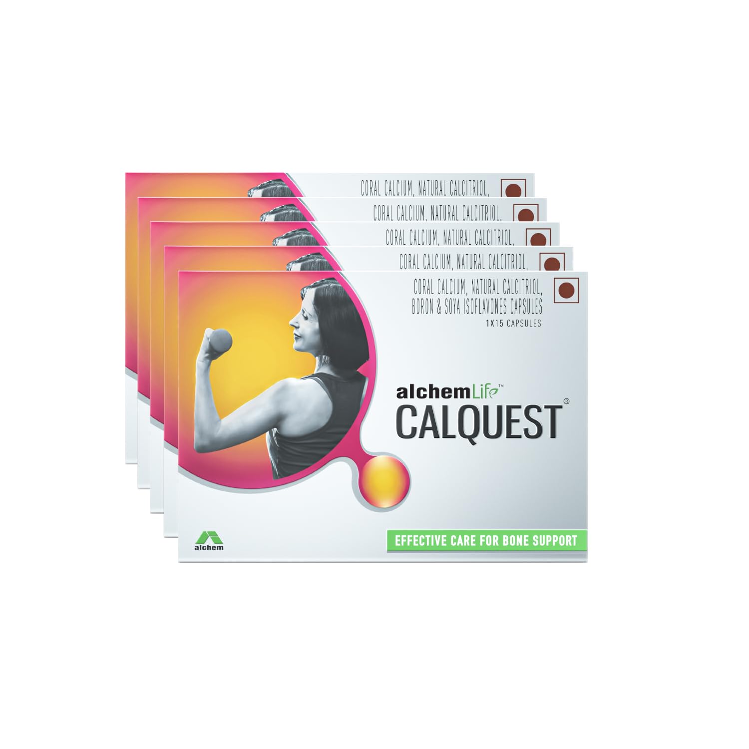AlchemLife CALQUEST® Neutraceutical Coral Calcium Natural Calcitriol, Boron and Soya Isoflavones Capsules, 15 Counts (Pack of 5)