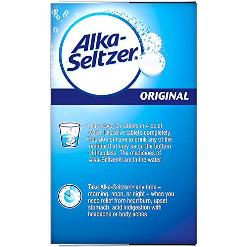Alka Seltzer Original Heartburn Relief and Pain Relief Antacid Tablets bring fast relief of heartburn upset stomach and acid indigestion. Providing trusted and effective relief for more than 80 years Alka Seltzer Original tablets contain anhydrous citric acid and sodium bicarbonate that neutralize acid fast on contact relieving acid indigestion. These Alka Seltzer tablets dissolve in water quickly delivering fast relief that you can hear see and feel working.