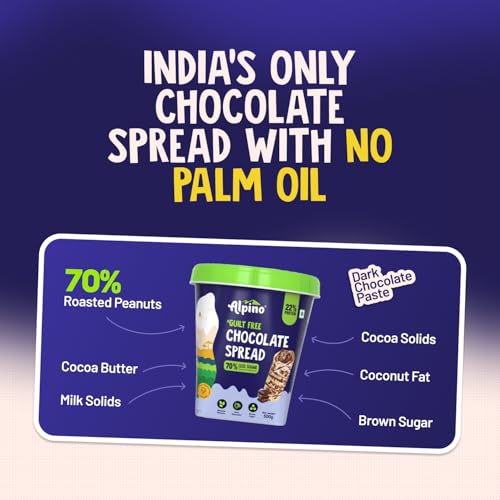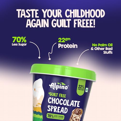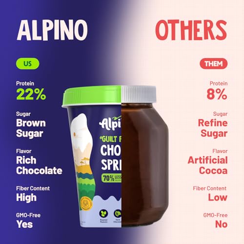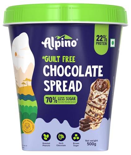 ALPINO Guilt Free Dark Chocolate Spread 500g – 70% Less added Sugar, 22% Protein, 28% Healthy Fats, No Palm Oil, Gluten-Free - Chocolate Peanut Spread