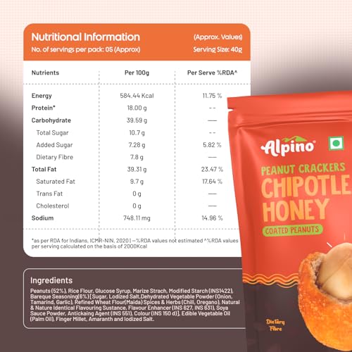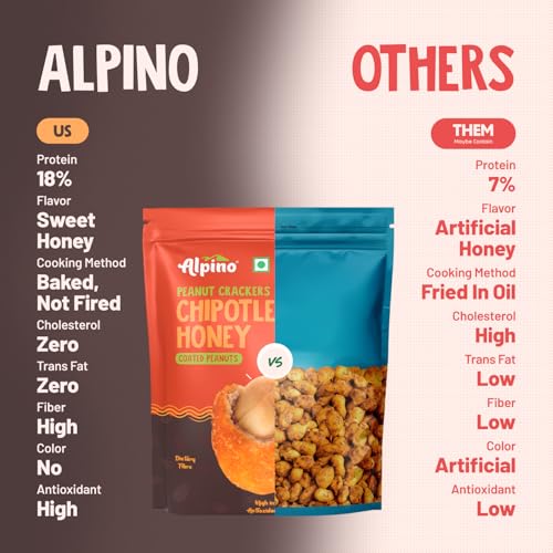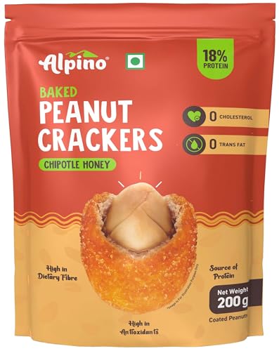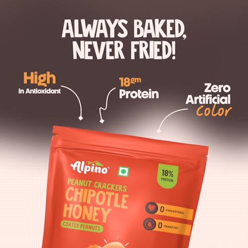 ALPINO Peanut Crackers Chipotle Honey 200g – Made with Roasted Peanuts & Chipotle Honey Seasoning - 18g Protein, 0 Cholesterol, 0 Trans Fat, Healthy Snack – Indian Spices Coated Peanuts