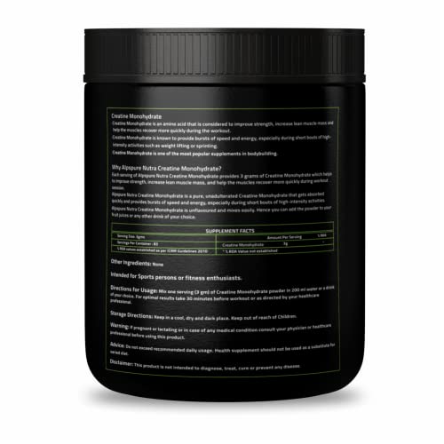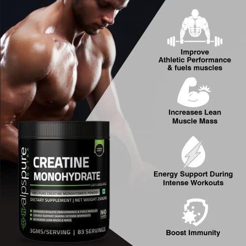 • From The Trusted Nutrition Experts: Alpspure Nutra Creatine Monohydrate 250gm (83 Servings) are a product of dedication to quality consistency and scientific research to make nutritional/dietary supplements of unrivaled excellence. Manufactured in a world