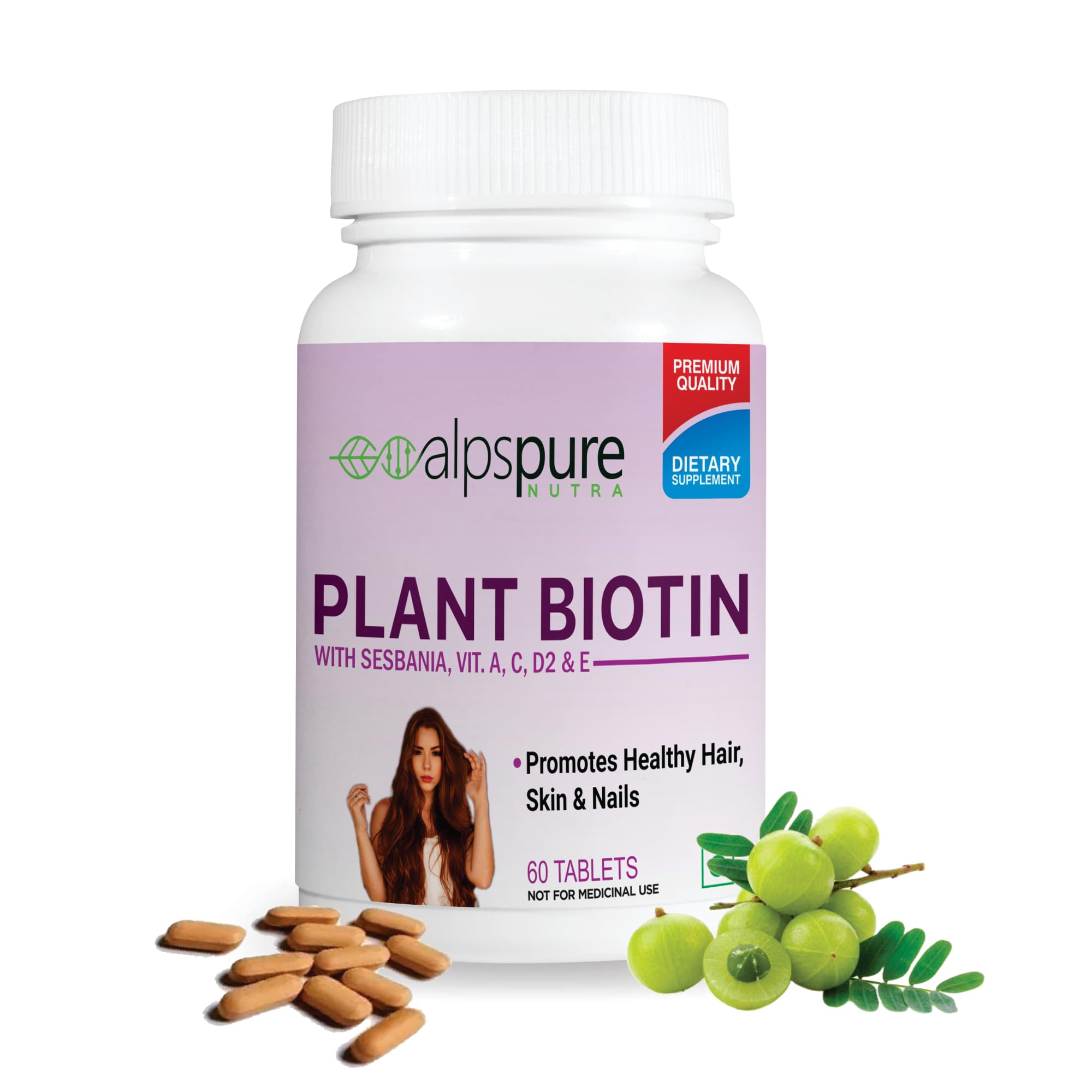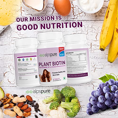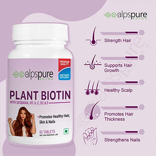 Promotes Thick Hair: Alpspure nutra's Plant biotin Tablets facilitates growth of thick and shiny hair. It is perfect for bringing dull and damaged hair back to life.