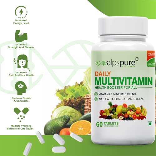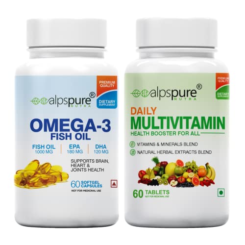 Alpspure Nutra Combo -Daily Multivitamin 60 Tablets & Omega 3 Fish Oil 1000mg 60 Softgels (EPA & DHA), Supports Healthy Heart & Joints |Complete Health Booster Multivitamin with Minerals