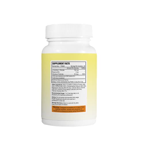 Package Contains: 1 Bottle of L-Carnitine 750mg (60 Tablets)